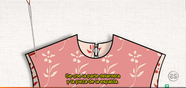Una vez realizado el trasero, se coloca derecho con derecho con el delantero y se unen las costuras laterales y los hombros
